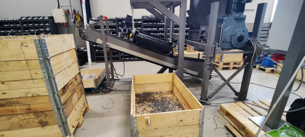 Le convoyeur magnétique Cross Wrap est une solution durable et entièrement intégrée, conçue pour fonctionner en toute transparence avec le système Wire Shredder. Cette combinaison de produits, comprenant à la fois le convoyeur magnétique et son support, garantit une séparation fiable des fils métalliques ferromagnétiques du flux de matériaux déchiquetés, améliorant ainsi l’efficacité du processus et la pureté du produit fini.