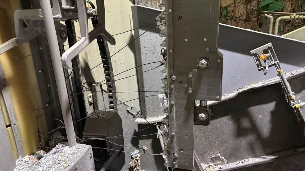 The mill processes a wide variety of bale sizes, recycled materials, and tying styles within a tight stock preparation and pulping area. Manual wire cutting was unsafe, labor-intensive, and difficult to standardize, creating challenges for both safety and operational efficiency.